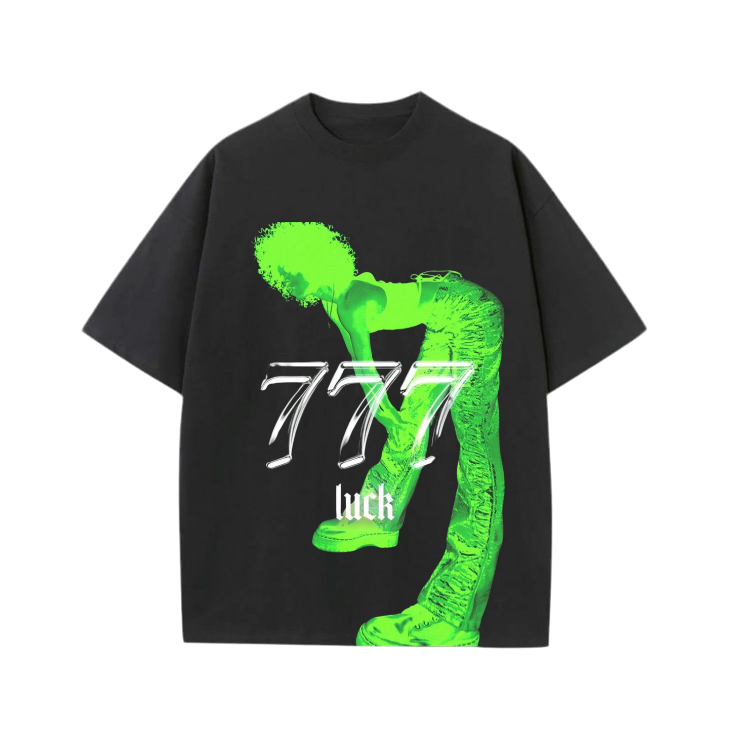 Göze çarpan yeşil tonlar, iddialı bir duruş ve şansın enerjisi: 777 Luck Oversize T-shirt ile tarzın ses getirsin. Retro-futuristik tipografi ve neon silüet baskısı, sokak stiline cesur bir karakter kazandırıyor.