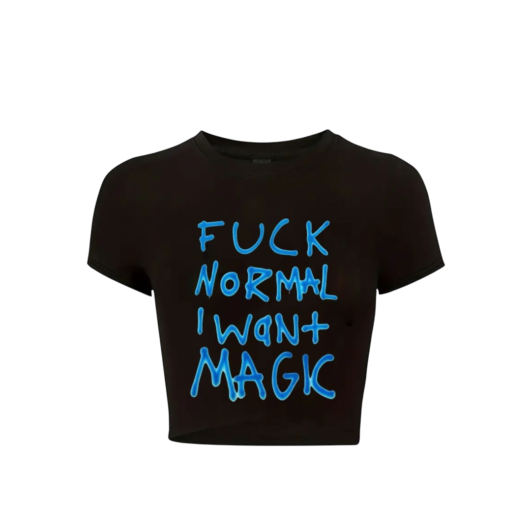Cesur yazı tipiyle manifestonu stiline taşıyan bu crop, 1. kalite pamuk ve likralı kumaşıyla hem rahat hem iddialı.