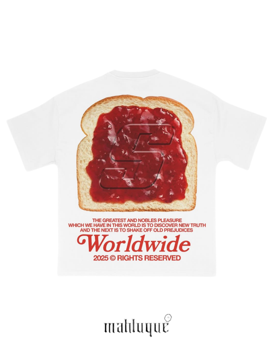 Güne kahvaltıyla değil, bir manifestoyla başla. Toasted White Tee, sıradan bir tost diliminin üzerine sürülmüş reçelin içine saklanan mesajıyla hem eğlenceli hem düşündürücü. Arka baskıda yer alan “The greatest and nobles pleasure…” ifadesi, sadece görsel değil, felsefi bir tat da sunuyor.